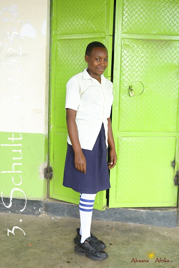 Die im Jahr 2007 geborene Daphine wird seit dem Jahr 2015 kontinuierlich durch eine Schulpatenschaft unterstützt und gehört damit zu unseren ersten Patenkindern. Die Familie von Daphine bestehend aus den Eltern und Geschwistern lebt im Dorf Nyamirima. Ihre jüngere Schwester Mackline lernt derzeit dank einer Schulpatenschaft in der 6. Grundschulklasse und der Bruder Alexander lernt dank des Happy Kids Programmes wie Daphine in der S.3. Daphine lebt in unseren schuleigenen Internat (Boarding) und schloss im Jahr 2022 die Grundschule auf dem zweitbesten Level ab. Im Jahr 2023 wechselte sie auf die Lower Secondary School und möchte diesen kommendes Jahr abschließen. Sie ist eine gute Schülerin, sodass sie dann auf unsere Upper Secondary School wechseln und diese Ende 2028 mit dem Abitur abschließen kann.