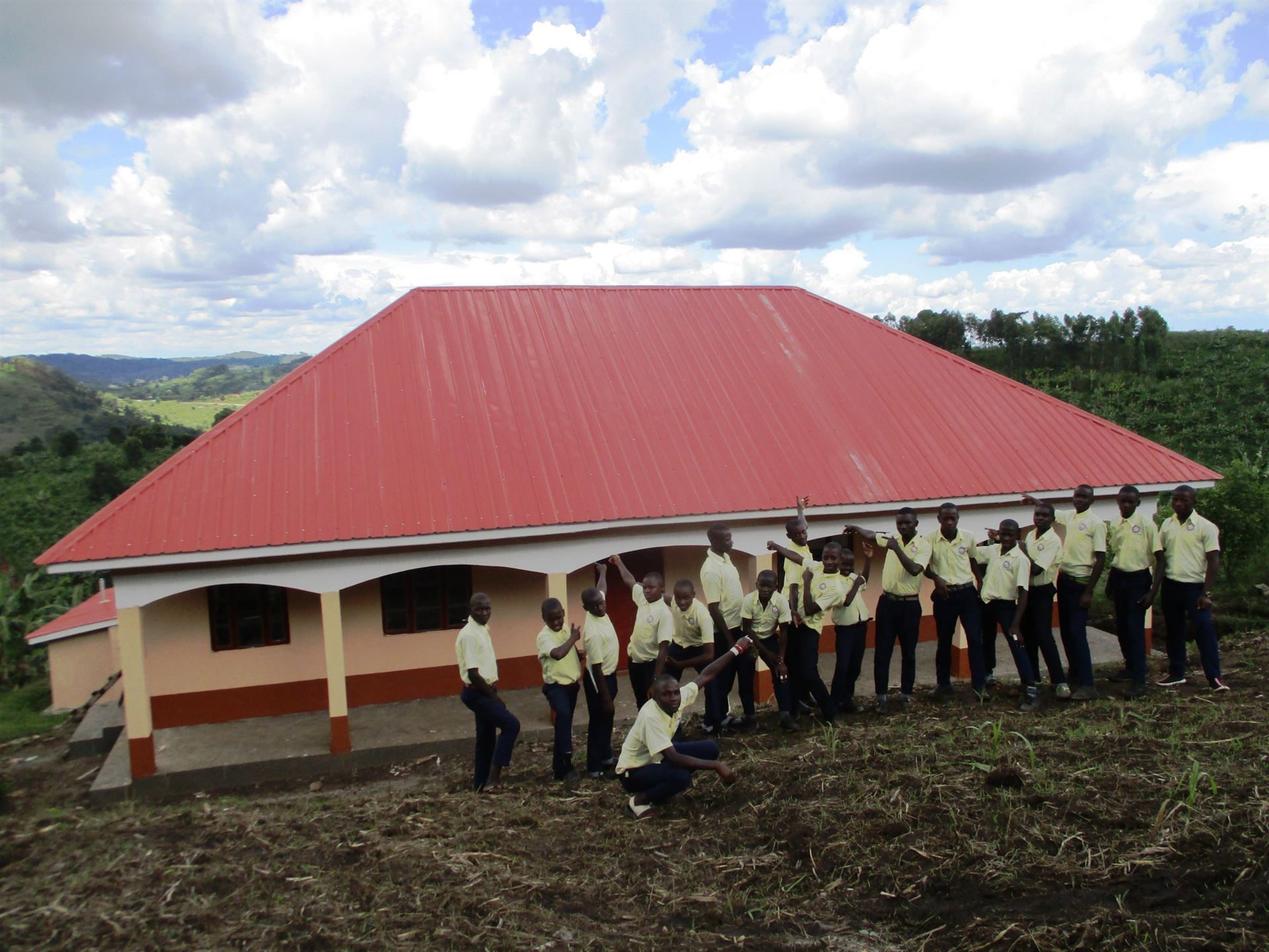 Dank 260 Projektpaten konnten die benötigten Klassenräume, das naturwissenschaftliche Gebäude sowie zwei Boardinghäuser pünktlich zur Schuleröffnung im Februar 2019 fertig gestellt werden. Sie befinden sich auf dem Schulhügel oberhalb des Primary School Bereiches. Ende 2025 legte bereits der 2. Jahrgang der Nyamirima Village Academy Secondary School das ugandisches Abitur ab.